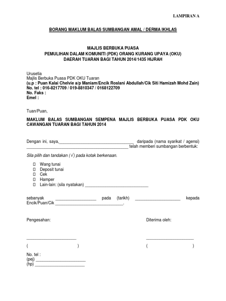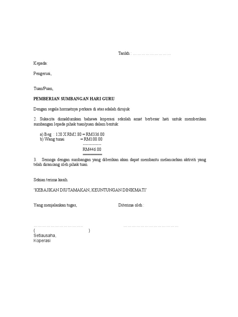 Contoh Surat Memberi Sumbangan Ikhlas / Saya dengan segala hormatnya ingin menarik perhatian berhubung 4.