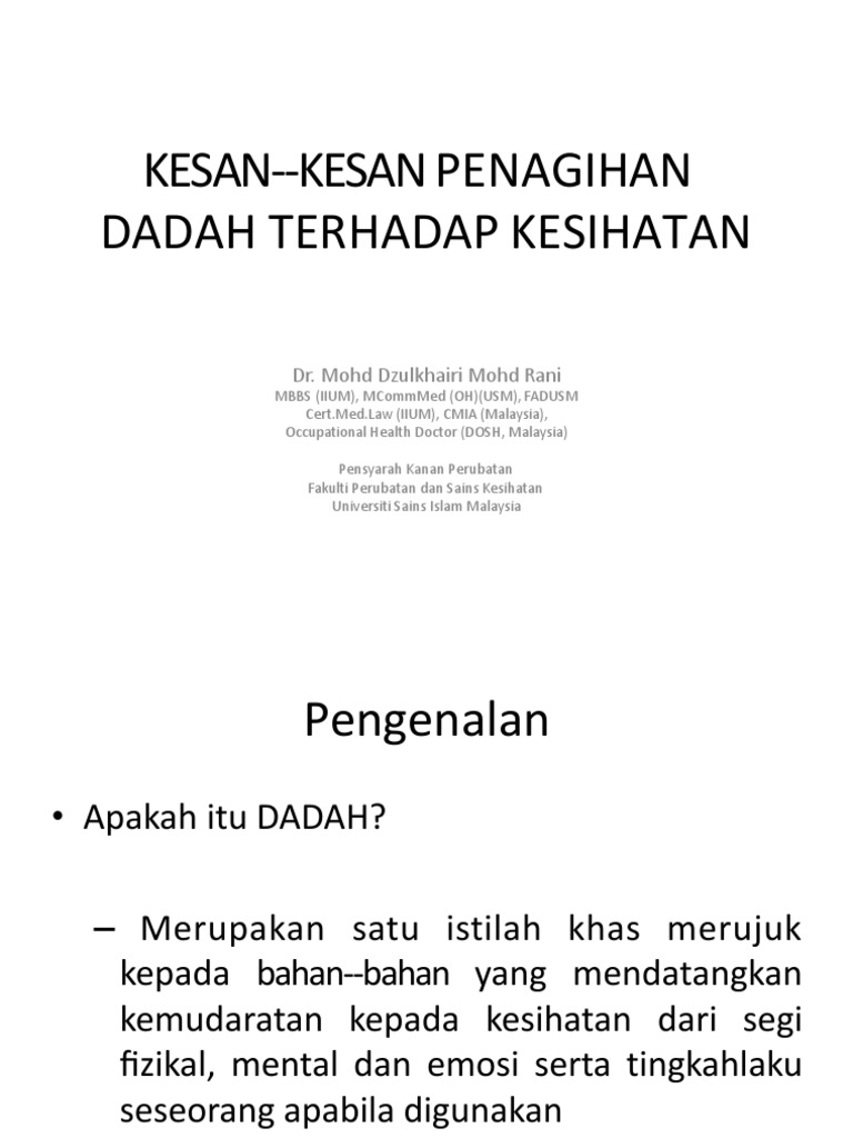 Kesan Penyalahgunaan Dadah Terhadap Kesihatan from image.slidesharecdn.com Badan manusia setiap hari tertakluk kepada radioaktif semulajadi, tetapi juga mengalami sinaran buatan di bawah dos tahunan 20 millisieverts, dos maksimum yang dibenarkan untuk pekerja nuklear, tidak ada risiko kesihatan Kesan penyalahgunaan dadah terhadap koordinasi badan dan kesihatan penggunaan dadah dadah digunakan dengan meluas di dalam bidang perubatan untuk menyembuh pesakit. Tambah zaharuddin, beberapa kajian daripada britain dan amerika juga pernah menerbitkan kajian menyebut merokok memudaratkan kesihatan dan ia juga adalah penyebab kepada pelbagai penyakit membunuh. Dari segi kesihatan, rokok elektronik tidak diiktiraf oleh pakar perubatan who sebagai langkah untuk berhenti merokok walaupun ramai diantara penggunanya berbeza dengan terapi nikotin di klinik kesihatan, dos nikotin yang masuk ke dalam badan perokok dari rokok elektronik sukar dipastikan. Terdapat kesan kesihatan negatif yang berkaitan dengan setiap dadah jalan haram. Dos yang boleh diterima dan mematikan. ◉ mengurangkan tekanan jiwa ◉ menenteramkan fikiran ◉ melambatkan gerak balas terhadap rangsangan. Tuliskan kesan ubat terhadap kesihatan mental anda.